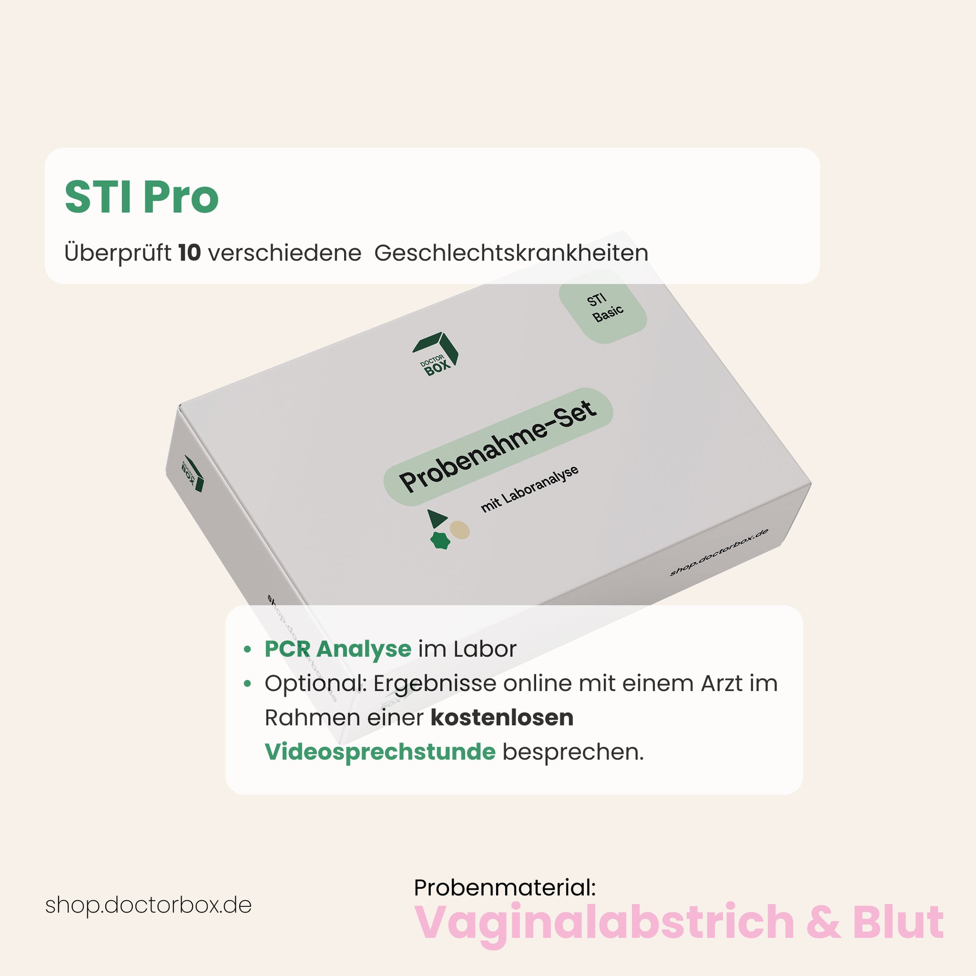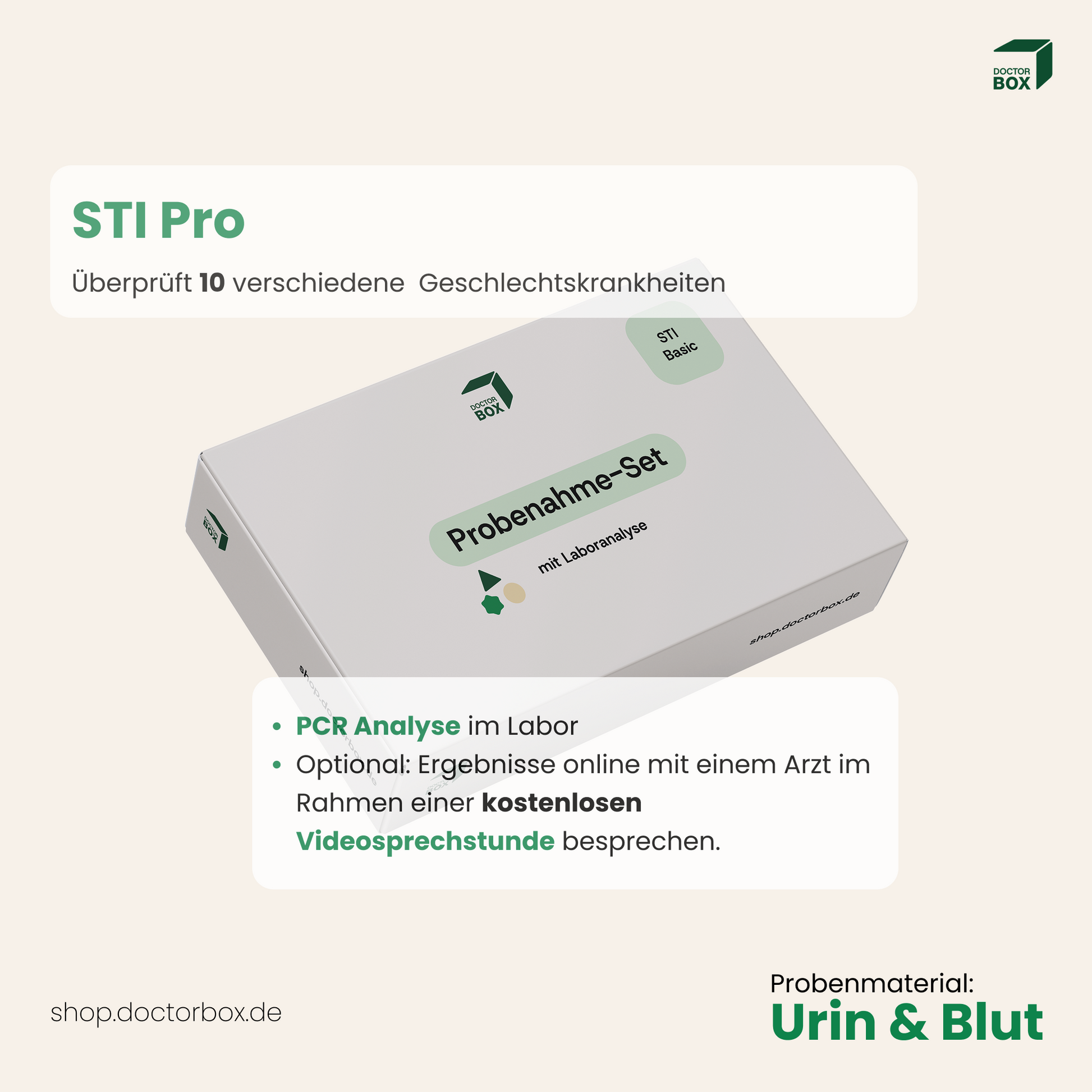 Avec le STI Pro autotest, tu bénéficies d'un dépistage complet de dix infections sexuellement transmissibles courantes – sans déplacement, sans attente, ni rendez-vous médical. Tu effectues le prélèvement discrètement chez toi et reçois rapidement et en toute sécurité ton résultat dans l'application DoctorBox.