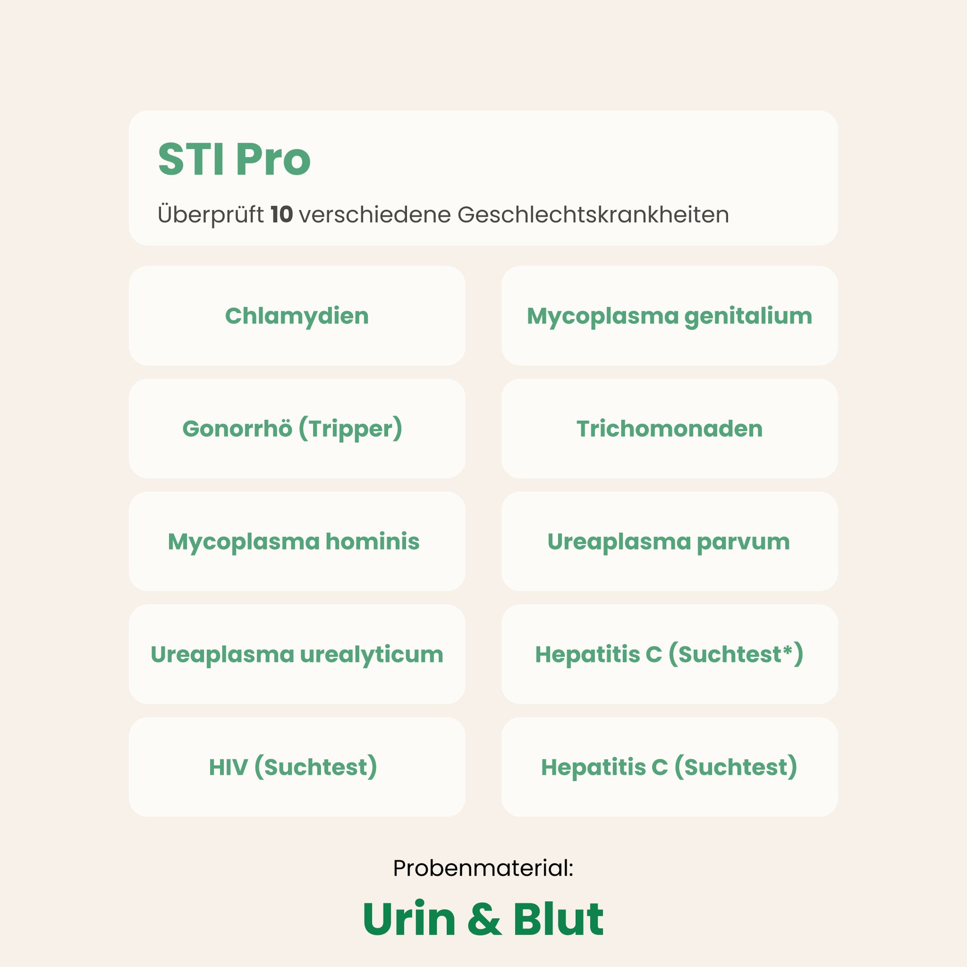 Le STI Pro vérifie les 10 infections sexuellement transmissibles suivantes à partir d’un échantillon d’urine et de sang :
