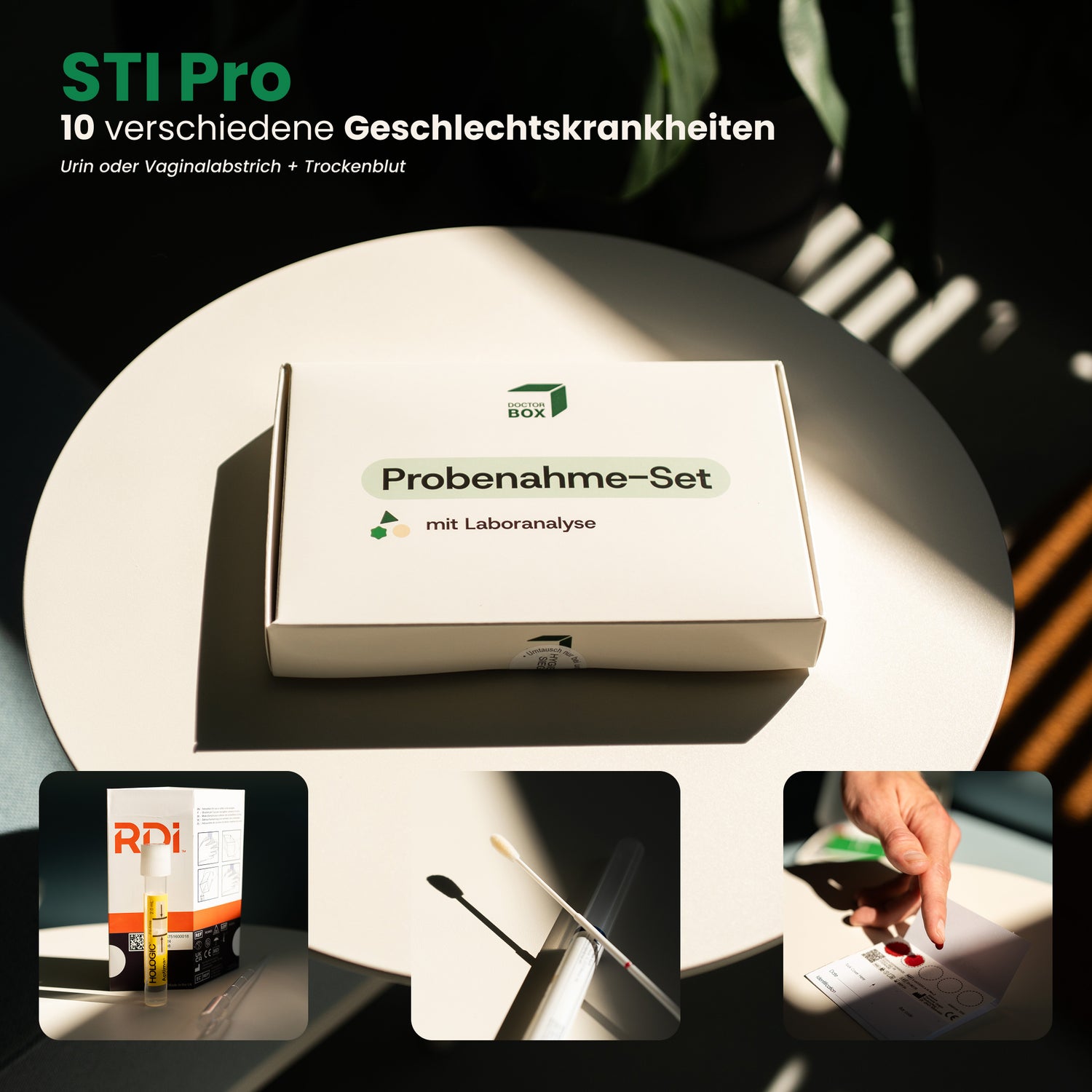 - STI Pro: Unser umfassendstes Set mit Tests für Chlamydien, Gonorrhö, Trichomonaden, Mycoplasma genitalium, Mycoplasma hominis, Ureaplasma parvum, Ureaplasma urealyticum, HIV (Suchtest*), Hepatitis C (Suchtest*) und Syphilis (Lues) (Suchtest*).