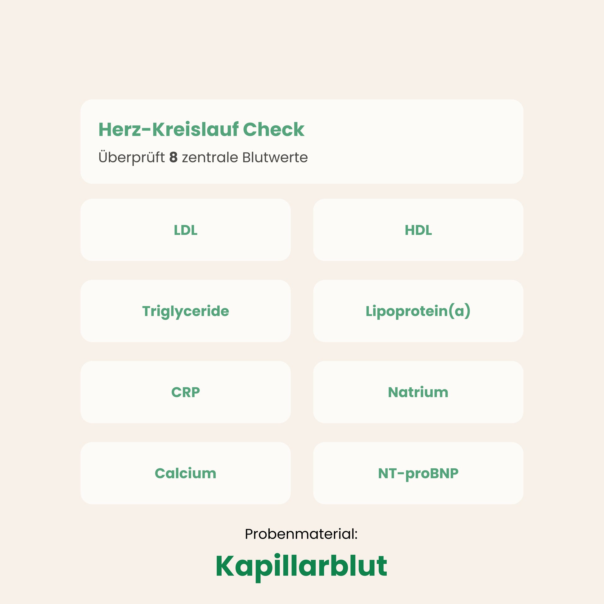 The cardiovascular check-up examines important blood lipids, inflammation markers, and specific heart parameters. Changes in these values can provide early indications of an increased risk of cardiovascular diseases—such as arteriosclerosis, heart failure, or heart attack.